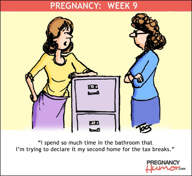 Not to mention, there's the frequent bathroom breaks. I recall taking my daughter to the park during my last trimester, and during the course of an hour, I had to go pee about 20 times. A bad parent would say, "Stay here while Mommy goes peepee" I wasn't one of them. A paranoid parent that I am, I feared that someone would kidnap her while I was gone for 3 minutes, so each time I felt the urge to go, I took her to the bathroom with me. She was understanding in the fact that I had to interrupt her play every 5 minutes go to the bathroom. A pregnant woman should stay hydrated right? For me, drinking half a glass of water was equivalent to 30 trips to the bathroom in under 2 hours. Hence, I avoided drinking liquids. I must've been the most dehydrated-but-still-functioning pregnant woman out there.